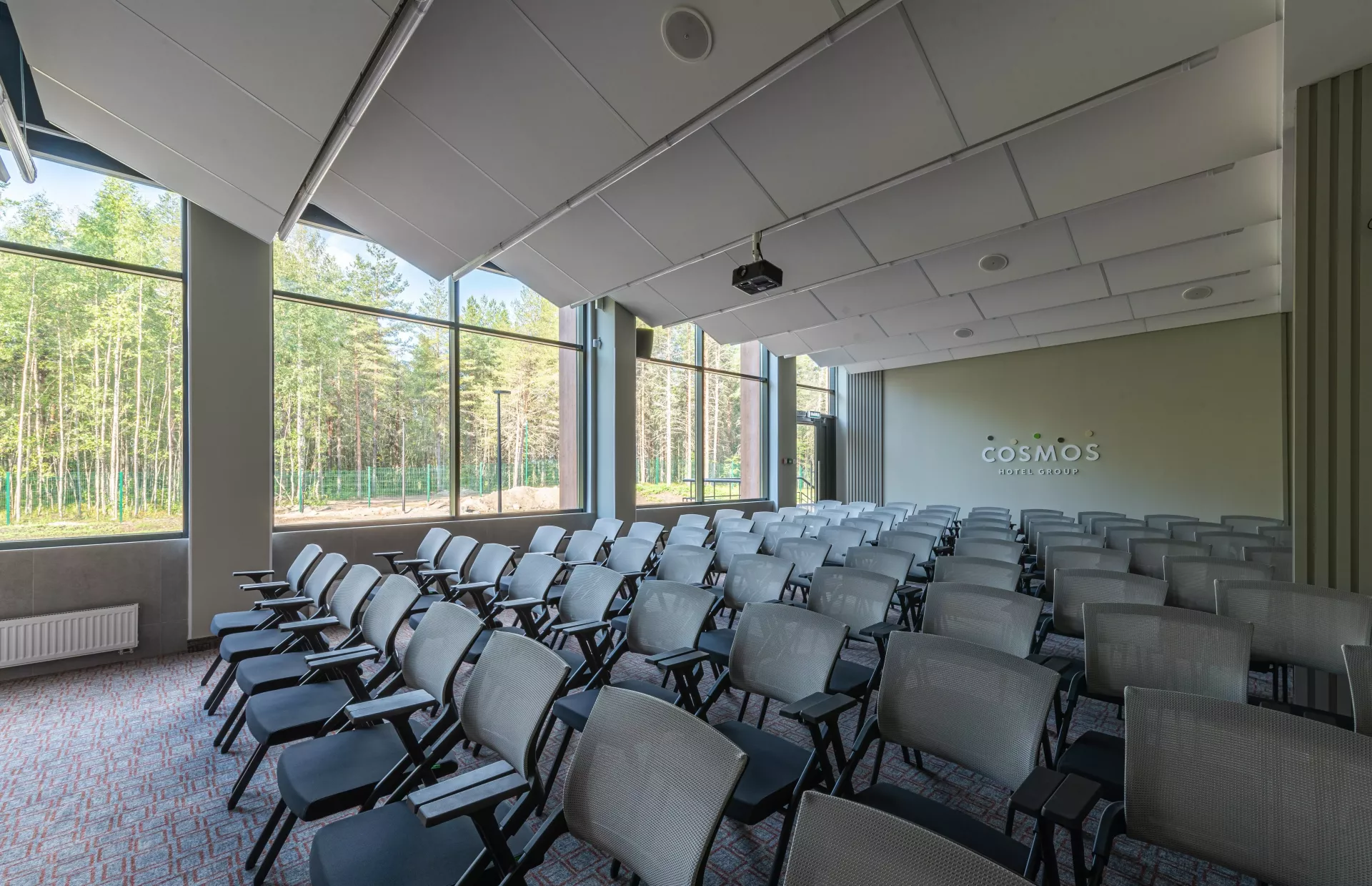 для конференций, семинаров и форумов. В зале есть рабочий стол для