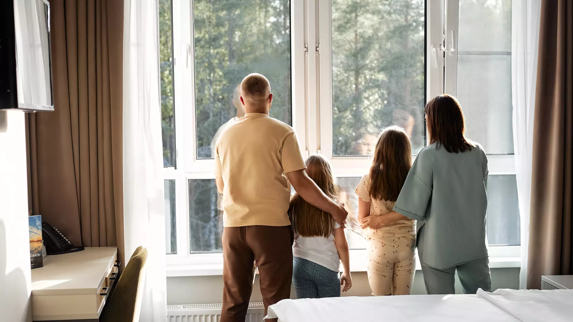 Стандартный номер с одной двуспальной кроватью, где создано комфортное пространство для отдыха и перемещения маломобильных гостей: большая площадь по сравнению с номерами других категорий, расстояние между мебелью для удобного проезда инвалидной коляски, оборудованная ванная комната и переход в соседний номер для проживания сопровождающих.